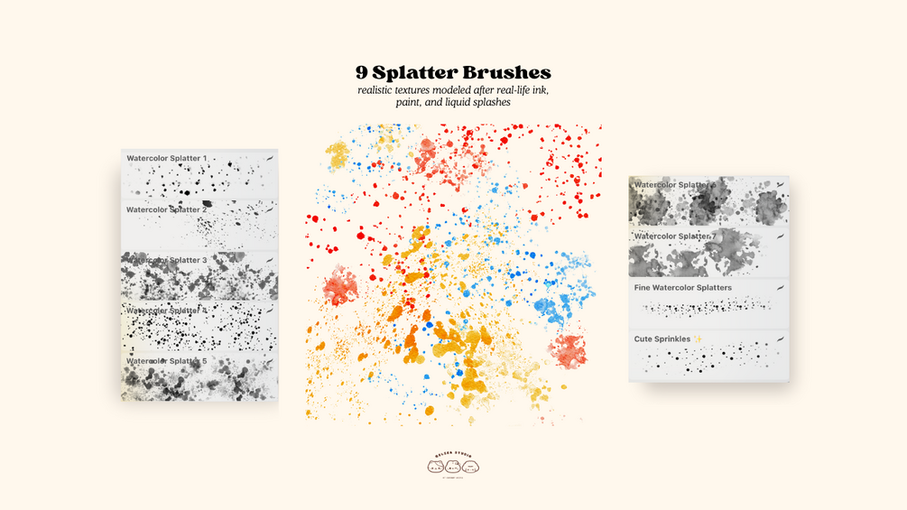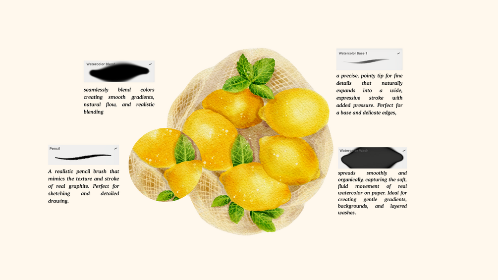 From soft washes to dry strokes, bleeds, and fine details – all designed to mimic real paint behavior. -
